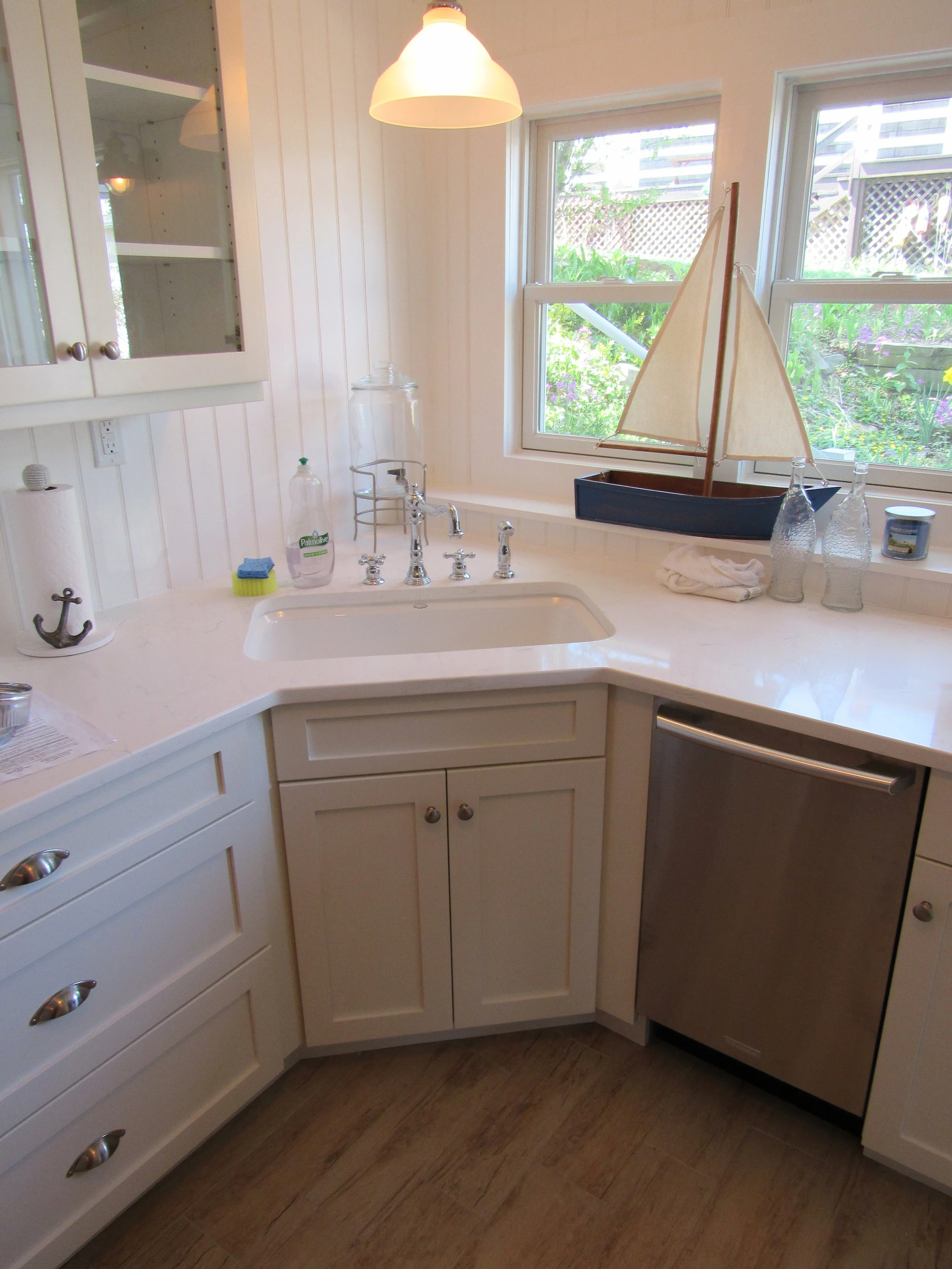 We are different totally in our knowledge and background. Our hands have installed thousands of kitchens, we own every tool and two or three of them to manufacture and install cabinets. Until the early 2000s we manufactured our own cabinets and sold factory cabinets. We then began to sell factory made cabinets only but we still keep a shop set up for custom pieces necessary to compliment our factory sales. This equipment also allows us to do field repairs. We also use the computer-aided software with over 20 years experience in kitchen design using CAD. Our software is the finest available in the industry. We have a large screen monitor in our showroom for you to sit with our designers and make changes live on the screen. Come in and talk to us and I think you will notice the difference immediately the experience will show.